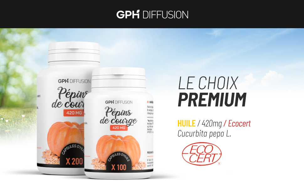 Pilulier de capsules d'huile pépins de Courge Biologique à 420 mg