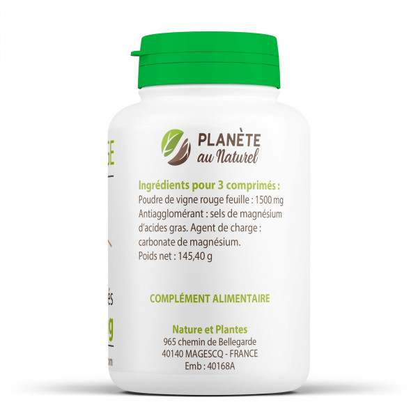 Pilulier de 200 comprimés de poudre de Vigne Rouge feuille dosés à 500 mg