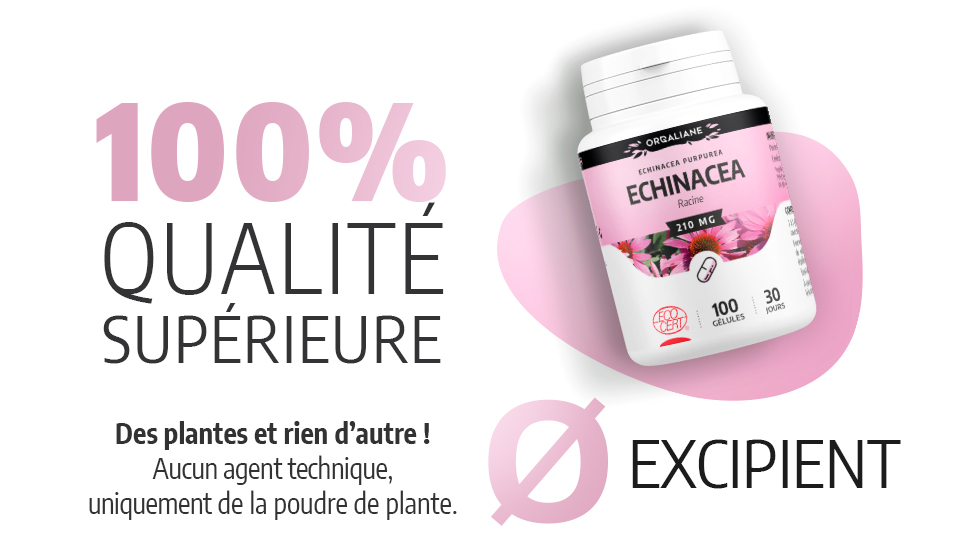 Bien qu'il soit encore possible aujourd'hui de prendre de l'échinacée sous forme de tisane, faire une décoction avec des racines de plantes peut prendre un certain temps (il faut faire bouillir les morceaux de racines pendant environ 10 minutes). En plus de vous proposer un dosage ajusté à vos besoins, les gélules d'échinacée se prennent facilement et rapidement au quotidien. La durée d'une complémentation en échinacée est d'environ 15 jours. Vous pouvez associer notre complémentation à de la gelée royale ou de l'acérola.