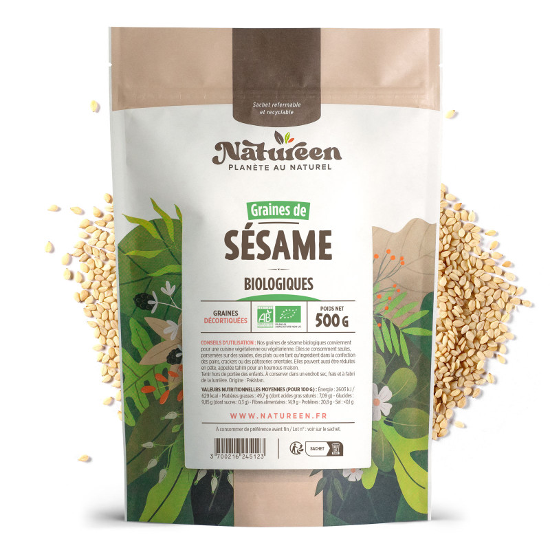 Les graines de sésame ont de grandes vertus. Utilisées traditionnellement dans la cuisine asiatique, elles sont de plus en plus présentes en Europe, tant bien en boulangerie que dans des desserts et autres préparations tel que l’houmous. Très appréciée, l’huile de sésame sert à assaisonner salades et plats froids mais aussi certains plats chauds. Une fois torréfiée, la graine de sésame à une saveur rappelant le goût de la noisette. Une fois grillée et mélangée à du sel marin, elle forme le « gomasio », un assaisonnement végétarien délicieux.