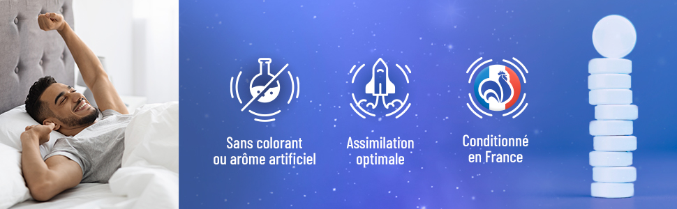 Tenir hors de portée des enfants. À conserver dans un endroit sec, frais et à l'abri de la lumière. La mélatonine contribue à réduire le temps d’endormissement.