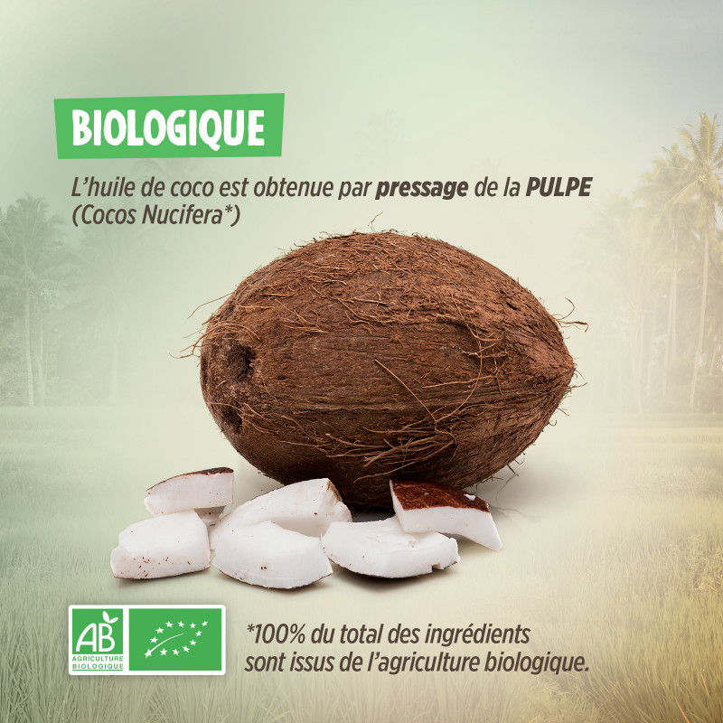 L'huile de coco est fabriquée à partir de la chair de coco, un fruit tropical à l'odeur enivrante. En réalité, le cocotier est une espèce de palmier nommé Cocos nucifera. Cet arbre, où devrions nous dire cette plante car le cocotier n'est pas vraiment un arbre, est originaire d'Asie. Il se compose de grandes palmes impressionnantes ainsi que de gros fruits à coque épaisse, qui poussent tout au long de l'année.