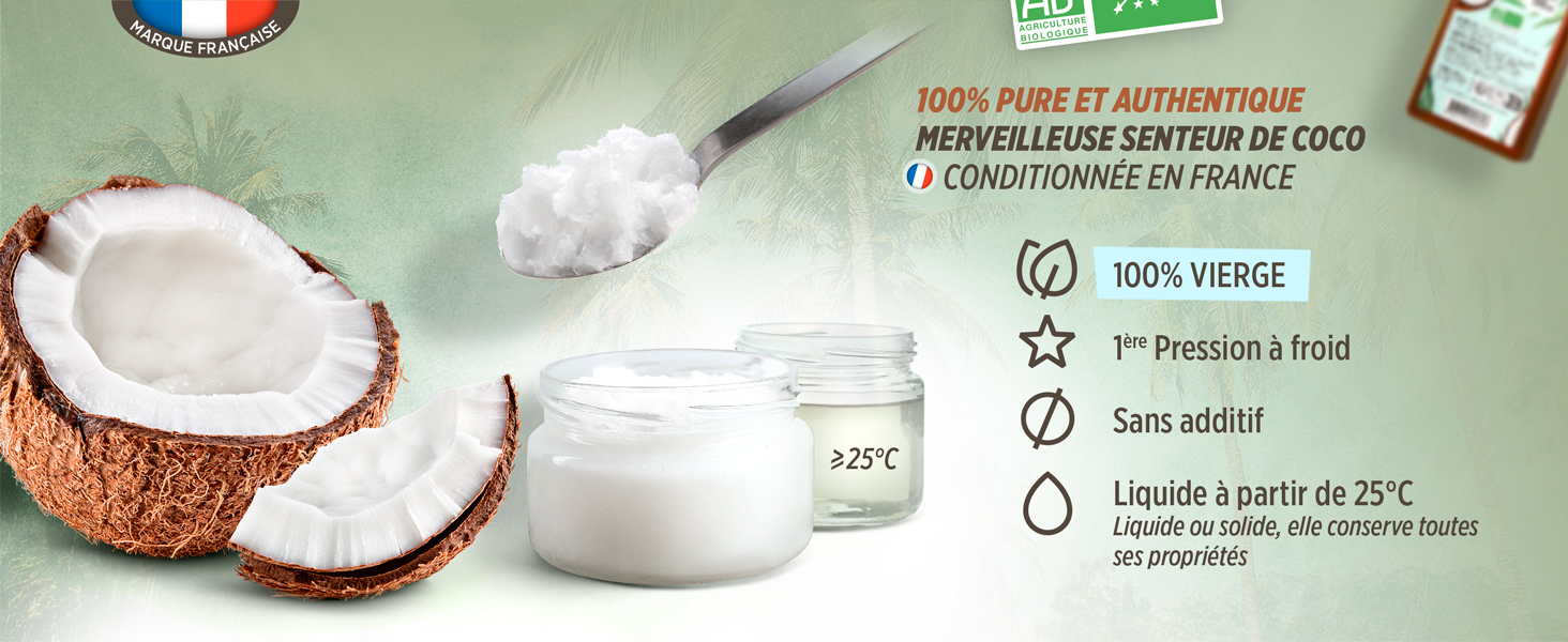 Liquide ou solide l’huile de Noix de Coco conserve toutes ses propriétés.