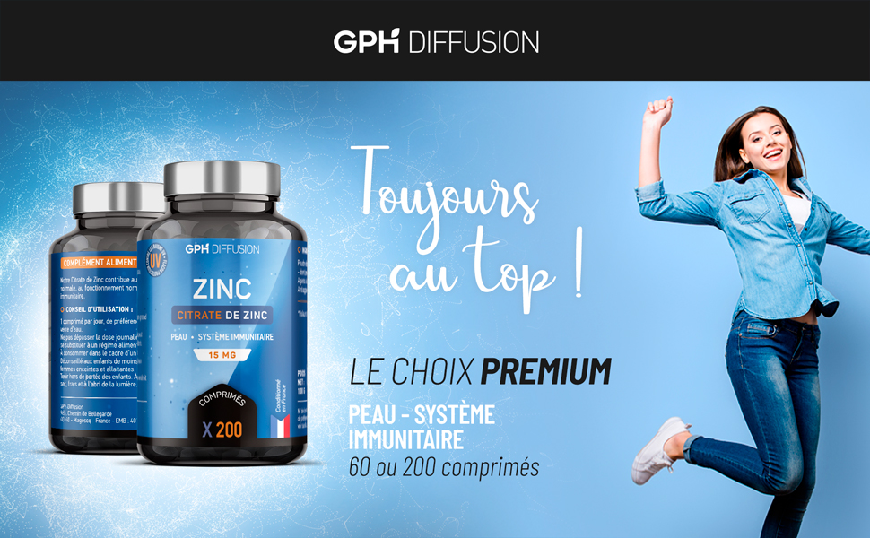 Le Zinc contribue au maintien d’une peau normale, au fonctionnement normal du système immunitaire.