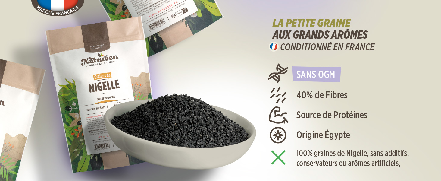 Source de protéines végétales, de fibres et de composés naturellement présents dans la graine, les graines de nigelle s’intègrent facilement dans une alimentation variée. Elles peuvent également être utilisées en infusion ou intégrées à des mélanges d’épices. Pratiques et polyvalentes, les graines de nigelle constituent un ingrédient traditionnel et savoureux, idéal pour enrichir le quotidien culinaire avec une note épicée et authentique.