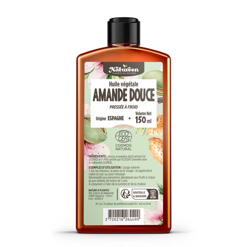 Parties utilisées : huile végétale extraite à froid à partir d'amandes récoltées à maturité