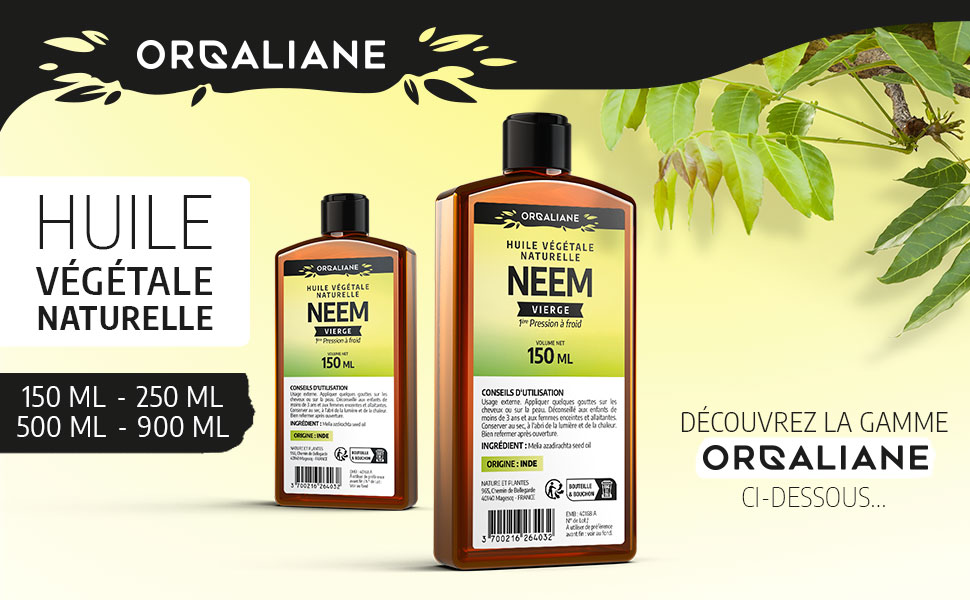 Bien connue dans la culture indienne, l'huile de Neem est utilisée sur le corps, les cheveux, mais aussi sur les plantes et les animaux. Notre huile précieuse vous charmera par sa grande qualité nutritive.