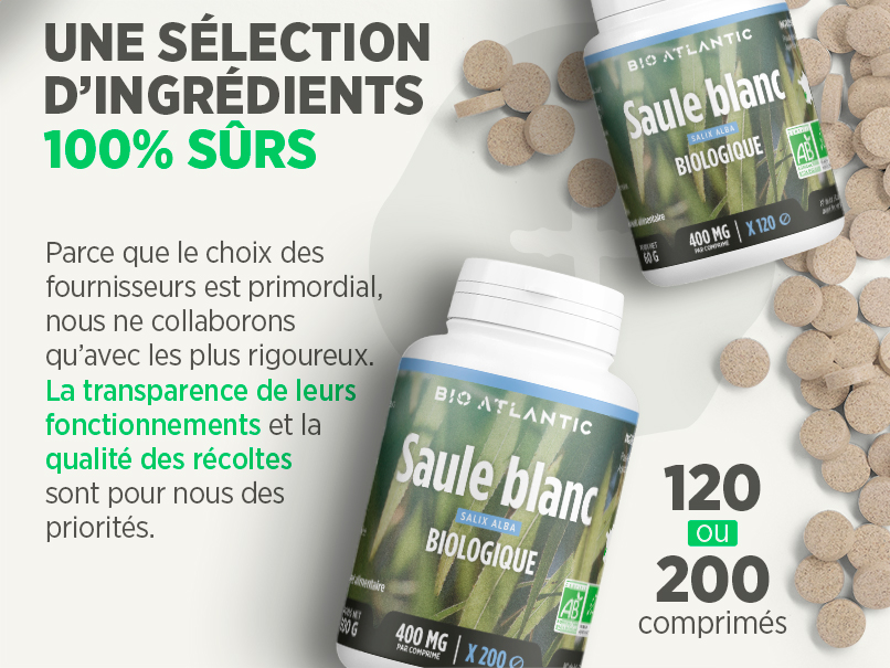 Excellent produit. Il calme mes douleurs articulaires avec succès (alors que l'aspirine ne le fait pas) Je suis ravie des comprimés de saule blanc. Je recommanderai pour ne jamais en manquer C'est un excellent produit et l'effet dure longtenps. Il soulage parfaitement mes douleurs dues à l'arthrose hérédiraire aux genoux et aux poignets et sans aucun effets secondaires.