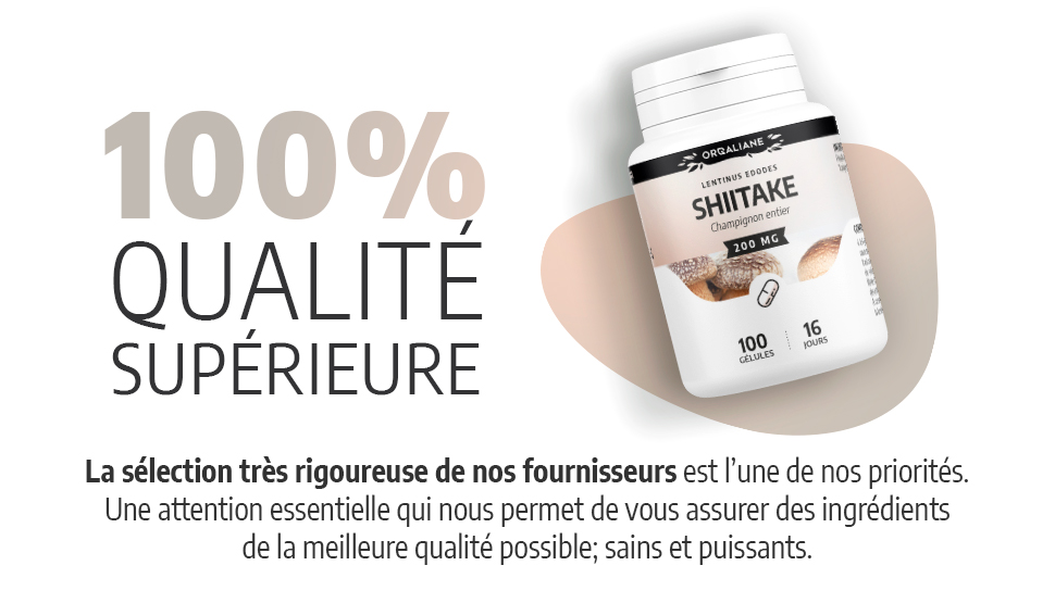 Prenez soin de votre bien-être en choisissant nos gélules de shiitake, un champignon aux multiples propriétés. Si son goût peut vous séduire, vous serez surpris par ses principes actifs utilisés dans les compléments alimentaires !