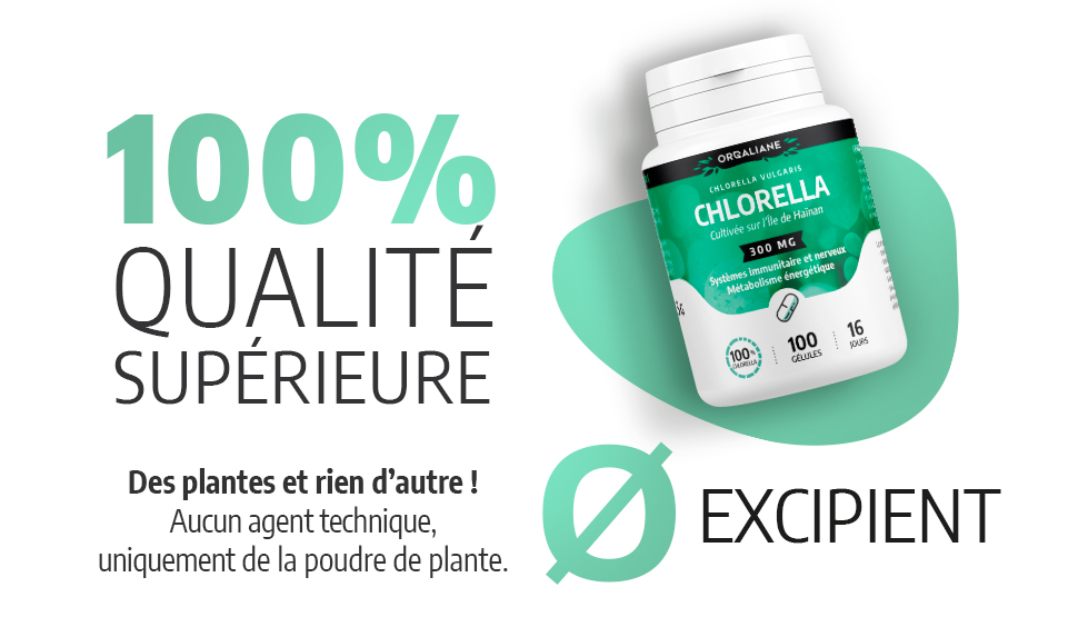 Pour une plus grande transparence, nous vous révélons la composition de nos gélules de chlorella. En consommant 6 gélules par jour, vous profitez de 50 grammes de protéines végétales mais aussi de 350 mg de caroténoïdes et de 60 µg de vitamine B12, ce qui équivaut à plus de 40% des valeurs nutritionnelles recommandées pour cette vitamine ! Notons que vous pouvez prendre jusqu'à 10 gélules de chlorella par jour selon vos propres besoins.