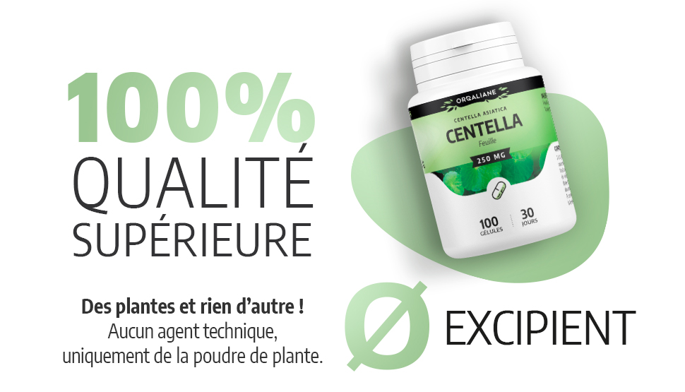 Bien qu'il soit possible d'utiliser la Centella asiatica sous la forme de soins beauté, la plante pourra agir de l'intérieur si vous la prenez par voie orale. Nos gélules de Centella vous permettent une utilisation efficace dans le cadre d'une complémentation bien-être. La durée d'une supplémentation de Centella est de 30 jours, à réitérer après au moins une semaine de pause afin de laisser à votre organisme le temps de récupérer. Vous pouvez associer notre complémentation à du ginseng rouge ou du ginkgo biloba dont les propriétés pourraient vous plaire.