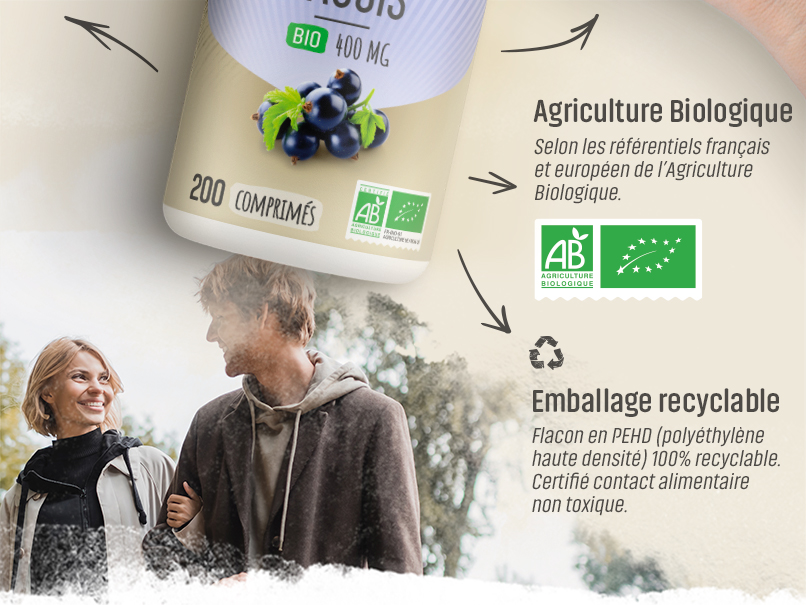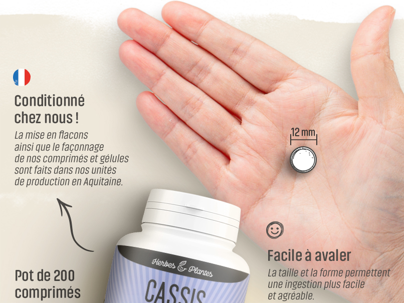 Nos comprimés de cassis ont été réalisés à partir de plantes biologiques qui ont été sélectionnées avec soin. Ce sont les feuilles du cassissier qui sont utilisées dans notre complémentation. Elles contiennent des actifs naturels de qualité, ce qui garantit une grande efficacité. Récoltées à maturité, les feuilles de cassis sont séchées à bonne température pour une meilleure conservation des nutriments.