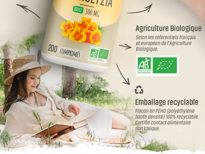 Pilulier de 200 comprimés d'Escholtzia Biologique dosés à 300 mg.