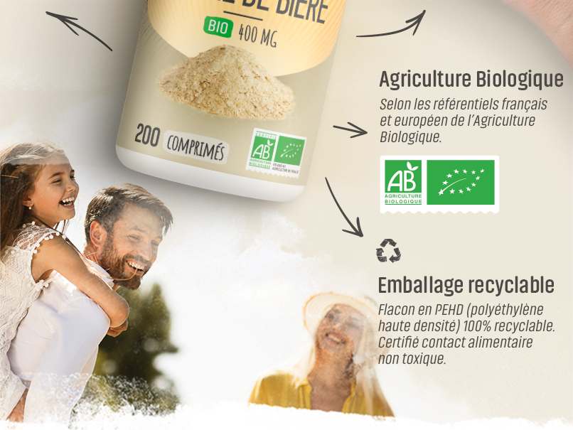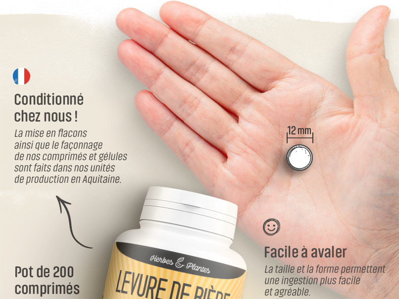Si la levure de bière est considérée comme l'un des compléments alimentaires les plus efficaces, c'est qu'il s'agit d'un produit de grande qualité. Nous avons choisi de la poudre de Saccharomyces cerevisiae issue de l'agriculture biologique pour la conception de notre produit. Les comprimés sont réalisés dans nos locaux, en France, ce qui nous permet de vous présenter une supplémentation efficace au prix le plus bas !