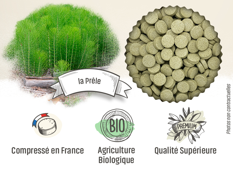 Lors de la fabrication des comprimés de prêle, ce sont les parties aériennes de l'Equisetum arvense qui sont utilisées. Afin de vous proposer un produit optimal, les plantes biologiques ont été séchées à température idéale pour conserver au mieux les nutriments de la prêle. Par ailleurs, les compléments alimentaires ont été élaborés dans nos locaux, ce qui permet une meilleure traçabilité mais aussi un coût plus avantageux. Il s'agit d'un produit efficace au prix le plus bas.
