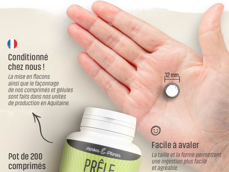 Découvrez l'efficacité de la prêle en prenant cette complémentation durant une prise de trente jours environ. Les comprimés de prêle ont été élaborés par nos soins pour une supplémentation des plus aisées. La taille et la forme du complément alimentaire sont idéales mais les avantages de ce complément alimentaire ne s'arrêtent pas là. Voici les atouts qui vous attendent…