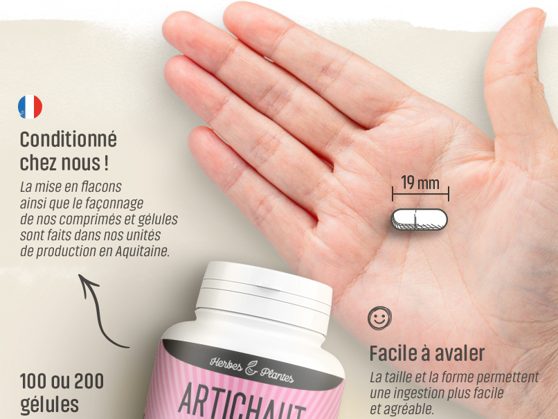Nos gélules sont fabriquées à partir de cellulose végétale. Ce qui fait qu'elles peuvent être consommées par tous, que vous soyez végétariens, végans ou pour celles et ceux qui prennent soin de leur bien-être. Notre complémentation est pratique et facile à prendre au quotidien. En choisissant les gélules végétales d'artichaut, vous êtes sûr de faire le bon choix !