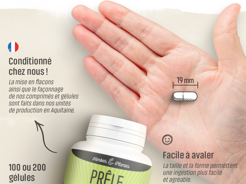 Comme le purin d'ortie, la prêle des champs est utilisée en association avec du compost ou de l'engrais pour donner un petit boost aux plantes de votre potager. Au-delà de son utilisation botanique, l'herbacée est consommée sous forme de compléments alimentaires pour ses effets sur le bien-être. Les supplémentations à base de plantes vous soutiennent lors de complémentations quotidiennes. Les tisanes font place aujourd'hui aux gélules et comprimés qui sont fabriqués à partir de plantes séchées.