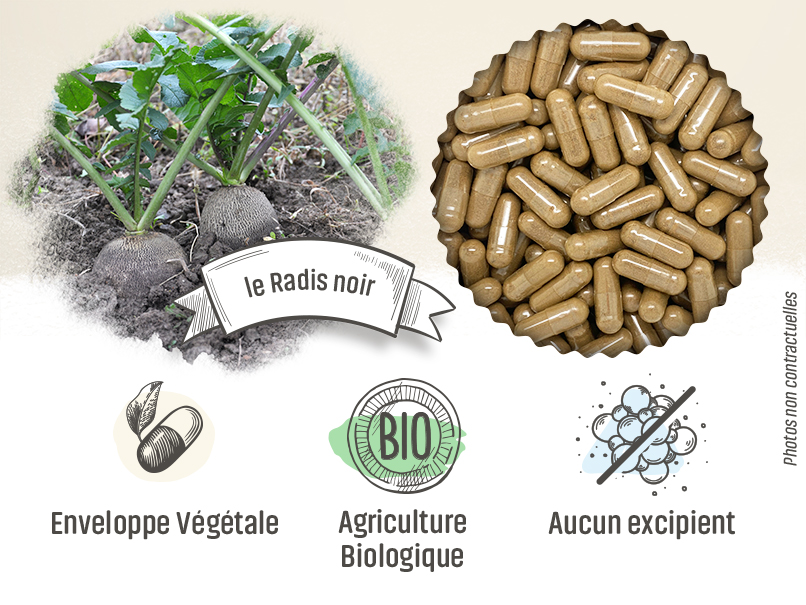 Il est important de prendre soin de notre organisme en optant pour une alimentation saine et variée. Celle-ci peut être accompagnée d'une supplémentation à base de radis noir. Pour éviter douleurs abdominales, reflux gastro-intestinaux ou flatulences, prenez le dosage conseillé sans le dépasser !