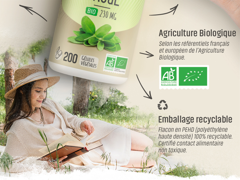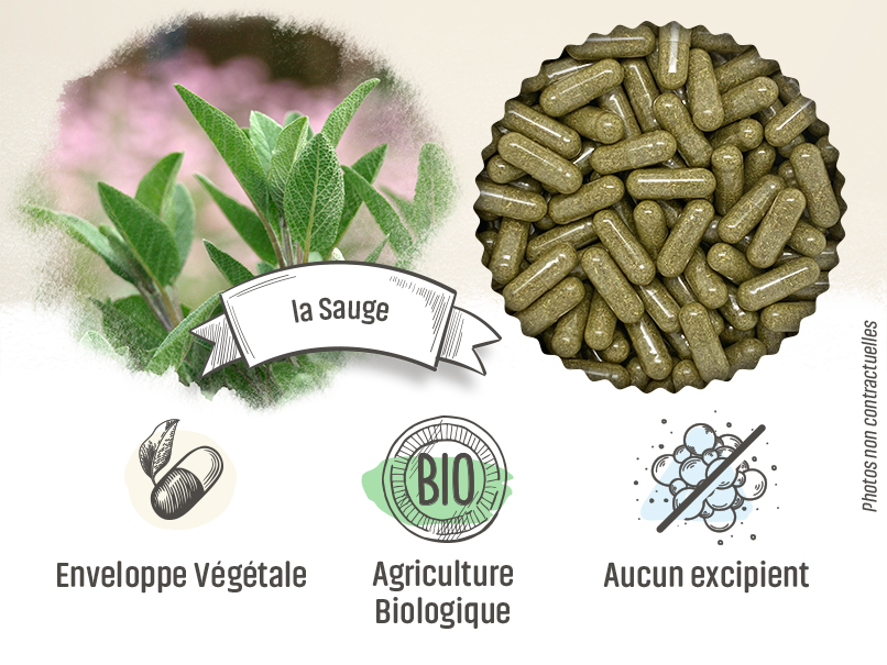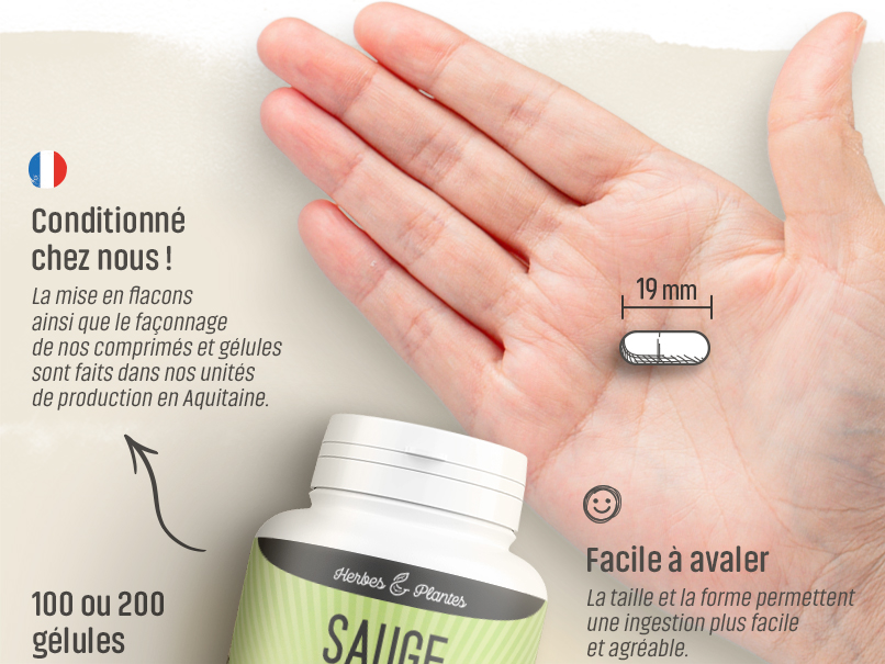 Utilisée telle un condiment, la sauge partagera avec vous son parfum délicat. Notre complément alimentaire, lui, a été étudié pour une prise sur le long terme. En réalisant une complémentation de 30 jours, vous pourrez ressentir les propriétés de la plante au quotidien. La sauge peut être consommée en synergie avec de la coriandre, de l'huile d’onagre, du trèfle rouge ou de l'alfalfa.