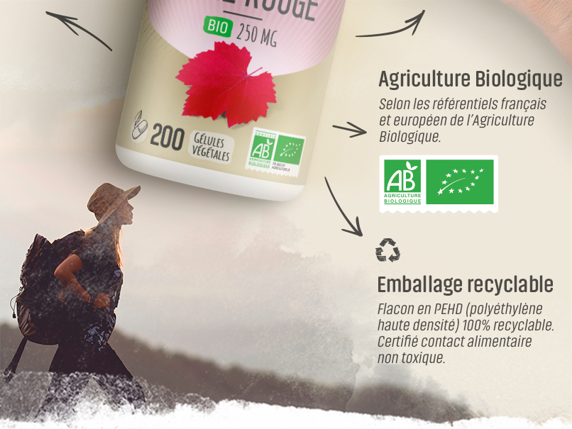 Pour réaliser une supplémentation de vigne rouge, mieux vaut choisir un complément alimentaire de qualité. Nos gélules de vigne rouge bio ont été réalisées à partir de plantes naturelles issues de l'agriculture biologiques. Quant à nos capsules, elles sont faites à partir de matières végétales, ce qui permet aux végétariens et aux végétaliens de les prendre en toute sérénité.