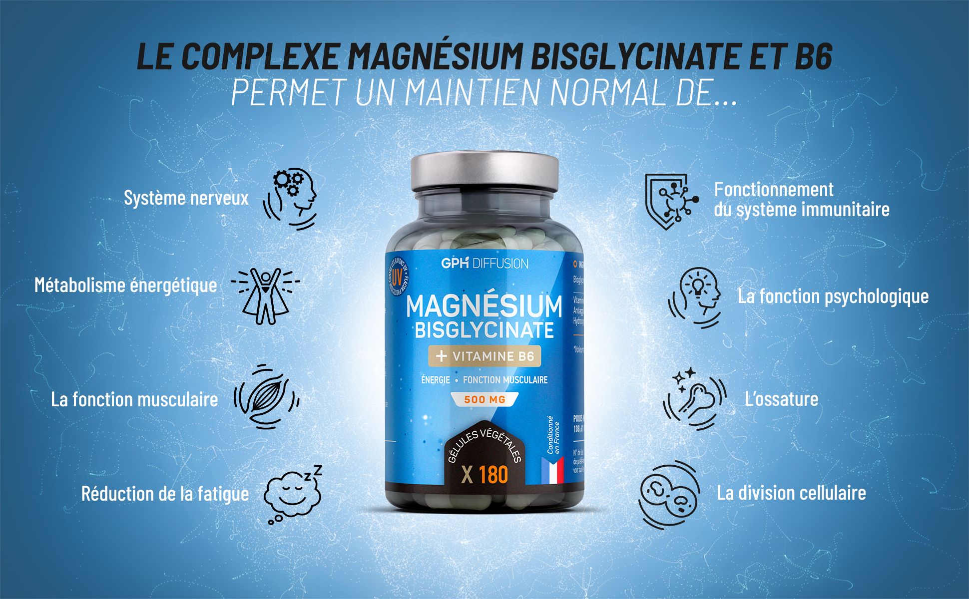 Magnésium Bisglycinate + Vitamine B6 - 500 mg
