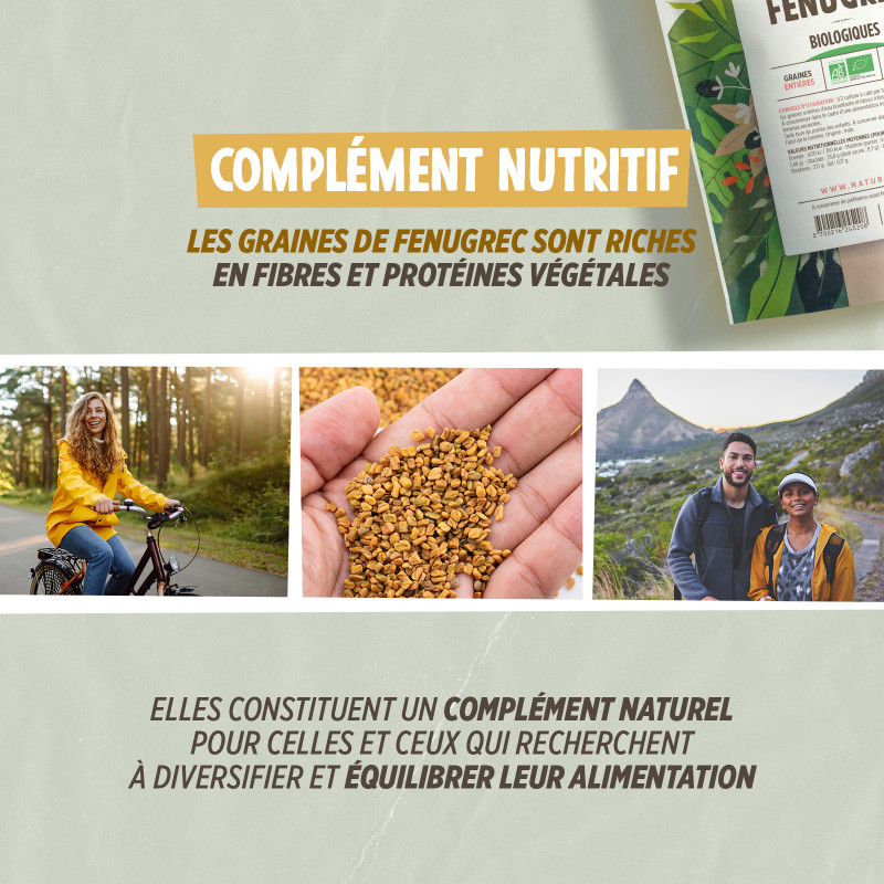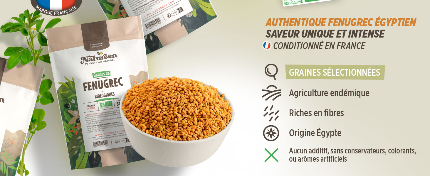 Utilisé depuis l’Antiquité autour de la Méditerranée, en Inde et au Moyen-Orient, le fenugrec est une petite graine dorée connue pour sa richesse nutritive et son goût unique. Aujourd’hui encore, il reste un ingrédient incontournable dans les cuisines traditionnelles comme dans les routines bien-être naturelles. Nos graines de fenugrec issues de l’agriculture biologique perpétuent cet héritage avec une qualité exemplaire : entières, pures et conservées sans aucun additif.