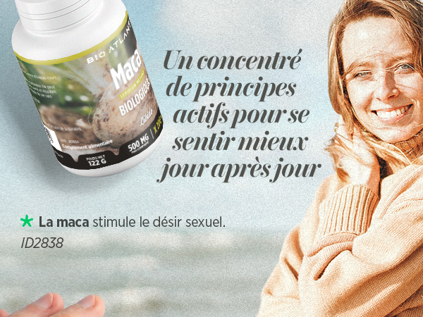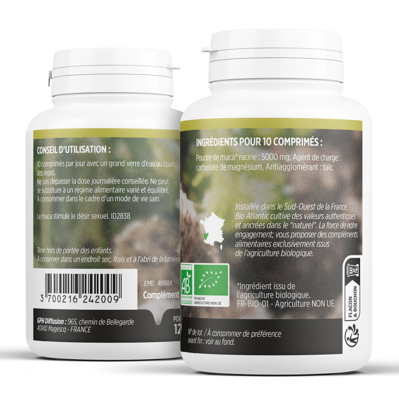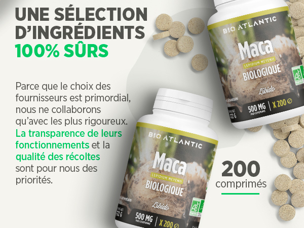 INGRÉDIENTS POUR 10 COMPRIMÉS :- Poudre de maca* racine : 5000 mg,