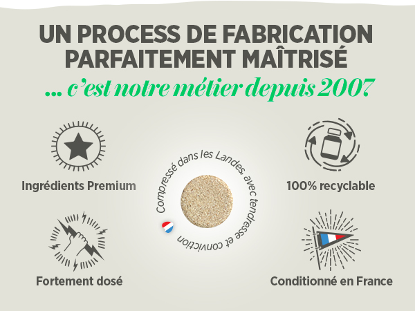 Ne pas dépasser la dose journalière conseillée. Ne peut se substituer à un régime alimentaire varié et équilibré.