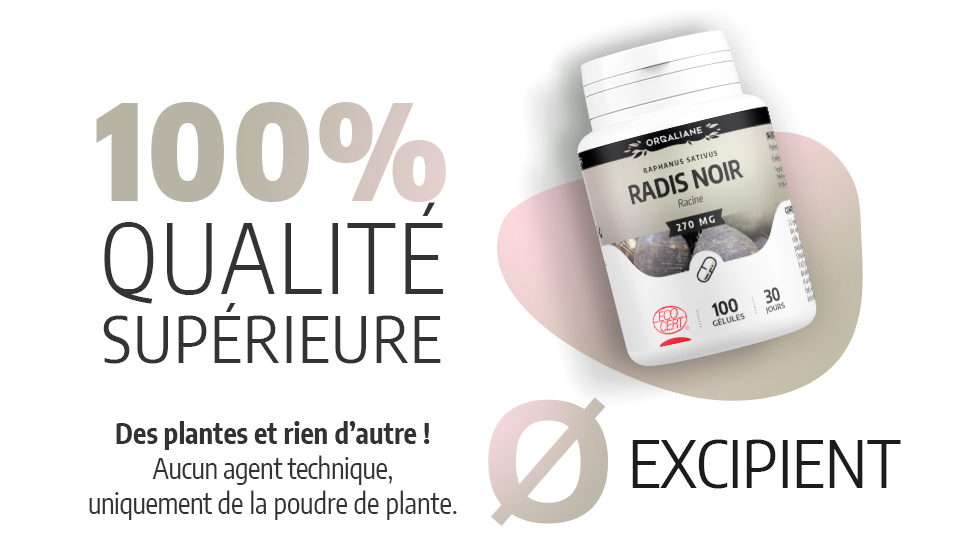 Issu de la culture biologique, notre radis noir est cultivé et récolté en France. La conception des gélules est faite à partir de la racine du radis noir. Nous vous recommandons de prendre 2 à 3 gélules par jour avec un grand verre d'eau, au cours des repas. Notre produit se conserve encore mieux à l’abri de la lumière et de toute humidité.