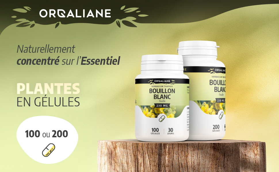 Une fois récoltées, les feuilles de bouillon blanc sont séchées puis réduites en poudre afin d'en conserver les propriétés. Elles sont ensuite transformées en compléments alimentaires pour faciliter les complémentations bien-être. Pour une meilleure utilisation, il est impératif de consommer le bouillon blanc au quotidien. Les gélules vous permettront une utilisation aisée pour toute la durée de votre supplémentation.