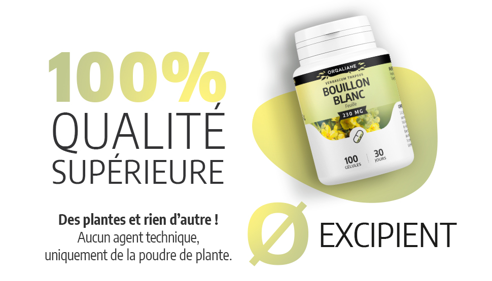 La durée d'une complémentation en bouillon blanc est généralement de 1 semaine. Il est toutefois possible de consommer cette plante plus longtemps (jusqu'à 1 mois maximum) à condition de bien respecter le dosage journalier conseillé qui est de 690 mg. Notez que vous pouvez associer le bouillon blanc à du thym, de la reine des prés ou du pollen.
