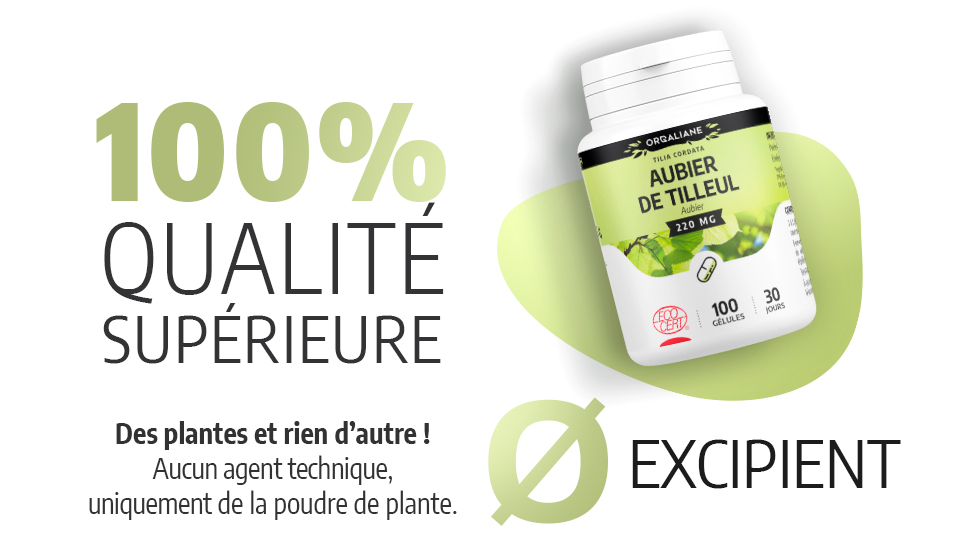 Dans notre complémentation, vous trouverez de l'aubier de tilleul biologique réduit en poudre, ce qui vous garantit un complément alimentaire de qualité. En outre, le dosage de nos gélules est adapté à une prise journalière, vous connaissez ainsi la quantité exacte consommée sur la journée.