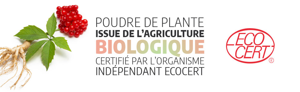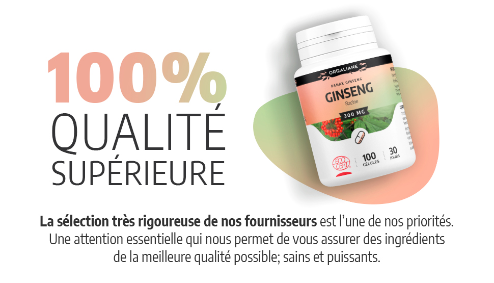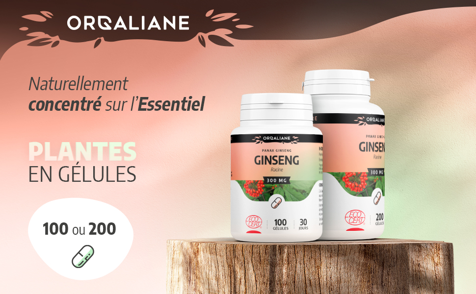 Pilulier de gélules de poudre de Ginseng Ecocert dosées à 300 mg.