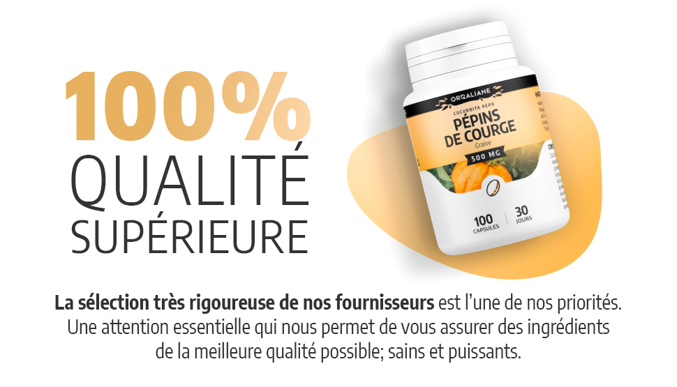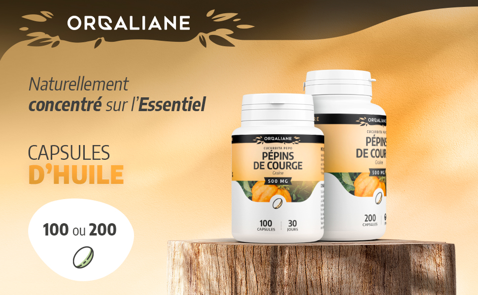 Tout comme pour l’huile d’olive vierge, il est nécessaire de s’en remettre à une première pression à froid pour extraire l’huile des pépins de courge. Cela permet ainsi d’obtenir une huile très qualitative, et de maintenir ses différents atouts. Les graines de courges font une excellente huile végétale. Elles contiennent des actifs naturels, notamment des oligoéléments, des minéraux et des vitamines. Nous vous proposons de l’huile de pépins de courge sous forme de capsules (gélules molles) afin de faciliter l’assimilation de notre complément alimentaire au quotidien. Elles sont dosées à 420 mg, leur forme et leur taille est adéquate pour une prise facile jour après jour.
