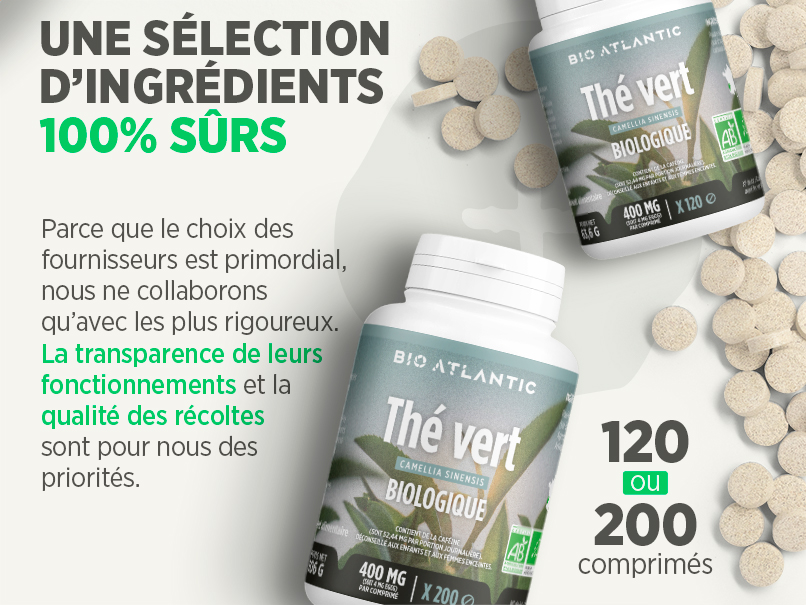 Pour une prise journalière de 3 comprimés de Thé Vert Bio :