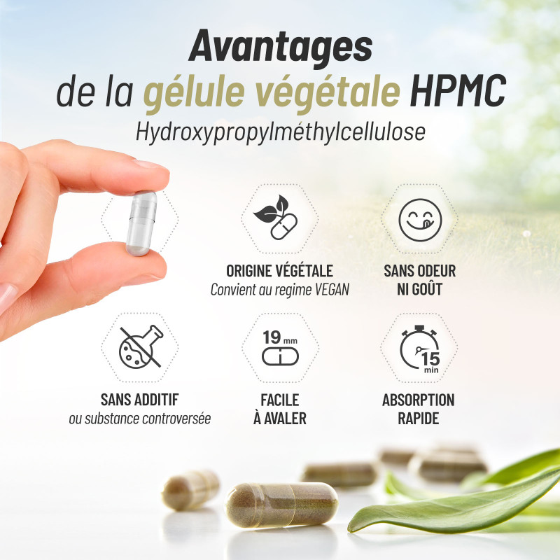 2 à 3 gélules par jour dans le cadre d’une alimentation équilibrée. Tenir hors de portée des enfants. Ne pas dépasser la dose journalière recommandée.