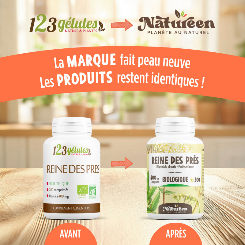 La reine des prés est ici fortement dosée à 400 mg par comprimé pour un usage facile au quotidien. Vous trouverez également la reine des prés sous formes de gélules végétales bio, en plantes coupées ou en poudre. L’harpagophytum et la prêle l’accompagne dans notre complexe Articulation Bio.