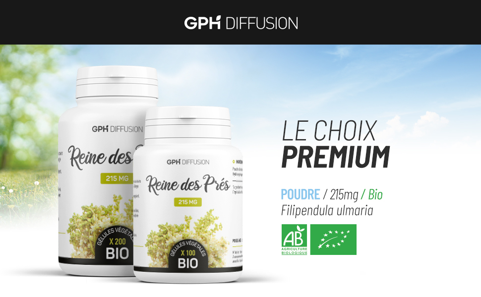 Originaire d’Europe et d’Asie, la Reine des prés, connue sous le nom scientifique de Filipendula ulmaria, est une plante vivace et herbacée de la famille des rosacées, tout comme l’aubépine et l’églantier. Cette plante mellifère et velue apprécie le climat des régions tempérées, on la retrouve à l’état sauvage en milieu humide, au bord de cours d’eau, dans les forêts éclaircies et elle peut atteindre 1700 mètres d’altitude. Ses feuilles sont grandes, duveteuses sur le dessous, ses tiges sont cannelées et de couleur rouge, tandis que son fruit est enroulé telle une hélice. L’odeur du végétal est agréable et suave, sa saveur est légèrement amère et herbacée, son parfum rappellera à certains celui de l’amande. Dans les compléments alimentaires, ce sont les sommités fleuries, notamment de plantes bio, qui sont essentiellement utilisées, pour leurs principes actifs et leurs effets bénéfiques.