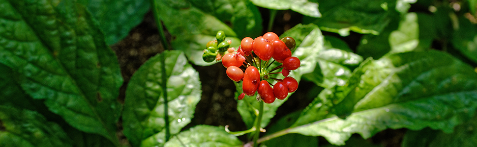 Le ginseng rouge est une variété de plante vivace, qui pousse notamment en forêt. Elle est appréciée surtout pour sa racine. Dans la Chine traditionnelle, cette plante est le symbole de la vitalité et de la croissance. En chinois, le mot ginseng signifie « racine-homme source de vie et de longévité ». Il existe deux types de ginseng rouge : le Panax Ginseng, qui nous vient de Chine, de Corée, mais également de Russie et des pays baltes, ainsi que le Panax Quinquefolius, une plante originaire des États-Unis et du Canada. On trouve le ginseng rouge sous les arbres feuillus. En automne, il est difficile de l’apercevoir, puisqu’il est recouvert de feuilles.