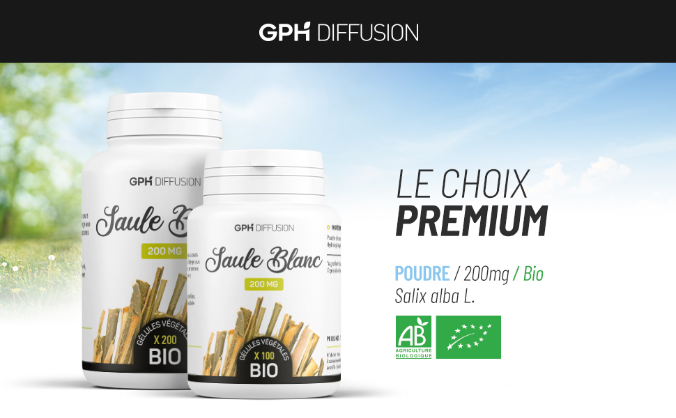 Le Saule blanc a pour nom scientifique Salix alba. Cette plante vivace, mellifère et ornementale, appartient à la famille botanique des Salicacées, et est originaire de l’hémisphère Nord. On la trouve dans les régions tempérées et froides, notamment en Europe et en Asie, où ses effets bénéfiques y sont reconnus depuis bien longtemps. Cet arbre pouvant atteindre 25 mètres de haut et une centaine d’années, est également connu sous le nom de Saule commun ou encore Saule argenté. Il apprécie les lieux humides et se portera à merveille le long d’un court d’eau ou près d’un étang. Ses feuilles sont teintées d’argent sur les 2 faces, elles sont lancéolées, entières, et peuvent parfois être utilisées en nutraceutique, bien que ce soit surtout pour son écorce que le saule blanc est employé dans des compléments alimentaires naturels.