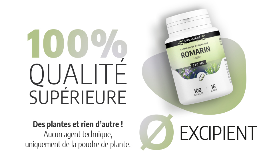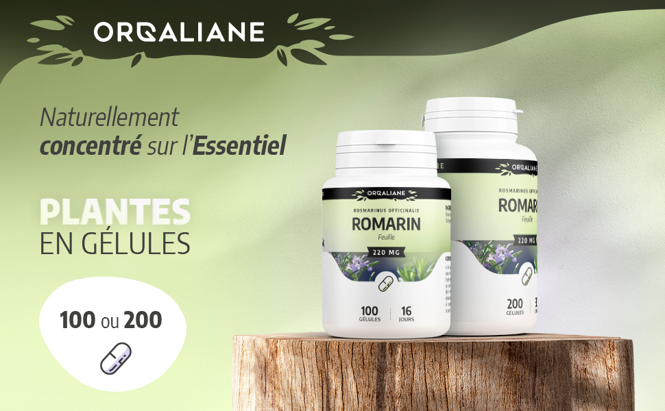 Si le romarin peut être utilisé comme aromate dans vos différentes préparations culinaires, il sera mélangé à vos différents aliments et votre organisme aura du mal à puiser ce dont il a besoin dans ses principes actifs. Pour profiter des propriétés du romarin de manière efficace, mieux vaut opter pour l'utilisation d'un complément alimentaire. Nos gélules de romarin vous permettent de réaliser une complémentation bien-être de façon aisée, avec des principes actifs qui pourront être absorbés de manière plus adéquate.