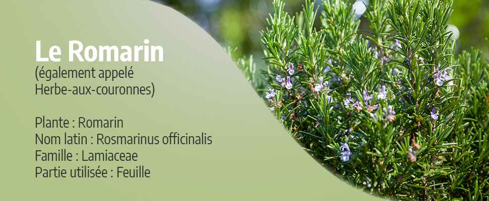 Connu sous le nom latin de Rosmarinus officinalis, le romarin officinal est parfois nommé Salvia rosmarinus car il a été reclassé depuis peu parmi le genre Salvia qui regroupe bon nombre de sauges. La sauge et le romarin font d'ailleurs partie de la famille botanique des Lamiacées, comme la menthe poivrée et la mélisse. Le romarin est une plante mellifère qui est utilisée comme condiment pour son goût prononcé et en parfumerie pour son odeur camphrée. Ce sont ses principes actifs qui lui vaut toutefois d'être consommé en complément alimentaire.