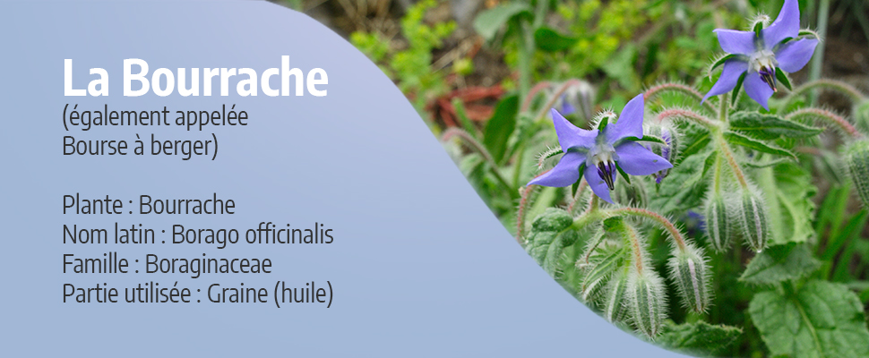 Notre huile de Bourrache est obtenue par pression à froid des graines de borrago officinalis. Notre huile de bourrache est exceptionnellement riche en acide polyinsaturés de la série oméga 6.