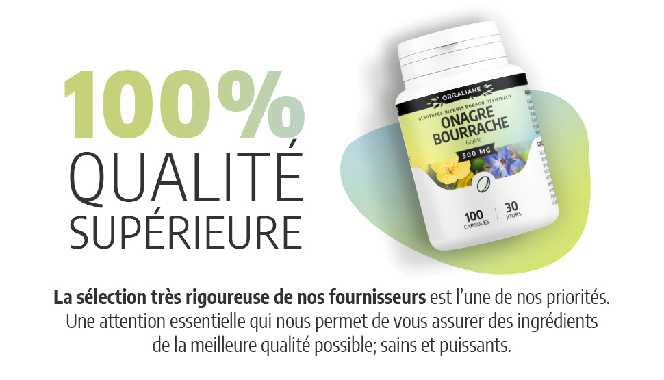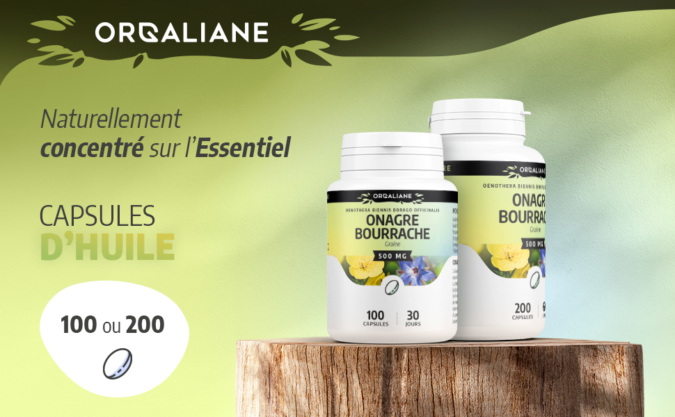 Le bourrache-onagre est une composition d'huile de bourrache et d'huile d'onagre. Nos huiles de bourrache et d'onagre sont obtenues par pression à froid.