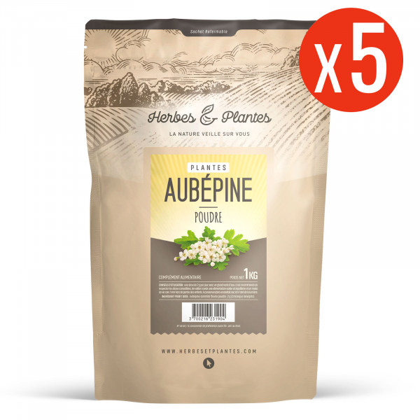 Aubépine sommité fleurie poudre : 2 g (Crataegus laevigata).