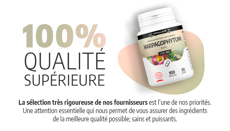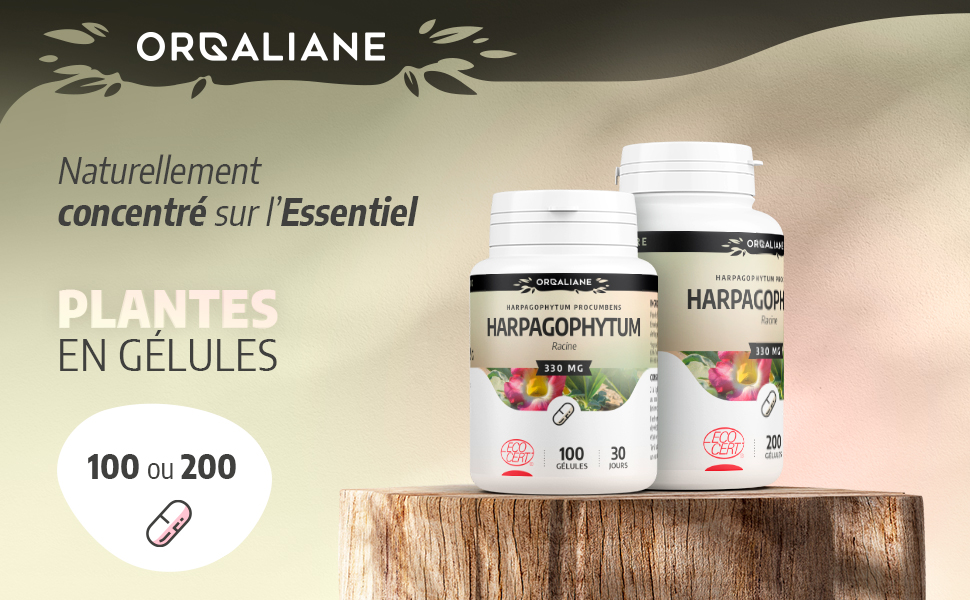 Ainsi, l'harpagophytum nous offre toutes ses caractéristiques et sa puissance, par le biais de ce complément alimentaire bio, dosé à 330 mg par gélule. Cette plante, pour l'anecdote, porte différents surnoms. On l'appelle également la griffe du diable, ou la racine de Windhoek, cela est dû au fait que son fruit soit doté d'un épais crochet, qui rappelle vraiment la forme d'une griffe. Cet harpagophytum vous apportera tous ses bienfaits au quotidien, lors de complémentations effectuées par le biais de ce complément alimentaire.