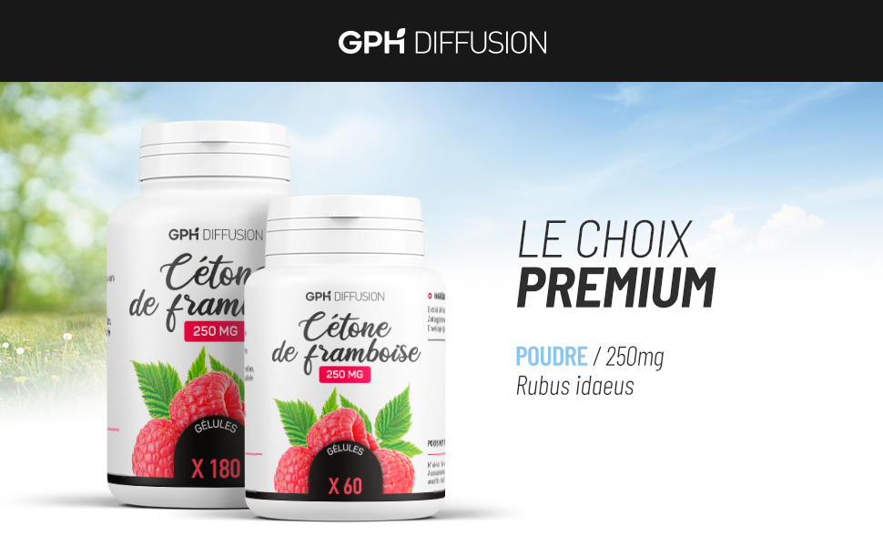 Pilulier de gélules d'extrait de framboise dosées à 250 mg