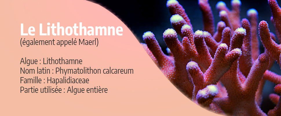 Le Lithothamne provient d'une plante marine appelée Phymatolithon calcareum. Ses autres noms sont maërl ou hanche à allure de pierre. C'est une algue rouge calcaire qui appartient à la famille des Corallinacées. Elle comporte des thalles qui produisent des ramifications. Les branches mesurent 2 à 3 centimètres mais peuvent atteindre 7 centimètres de longueur. Le Lithothamne se transforme en concrétion calcaire dont la forme est modulée par hydrodynamisme en suivant le mouvement de l'eau. A l'état naturel, il donne l'apparence de coraux de couleur rouge vif à rose violacé. La partie entière de l'algue est utilisée en phytothérapie tandis que les bourgeons sont exploités en gémmothérapie.